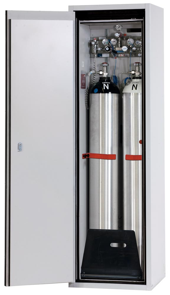 Druckgasflaschenschrank Typ G90, BxTxH mm 600x615x2050 für 2x50 Liter-Flaschen, Türanschlag links, RAL 7035 für halter, Einr.kl. EP530678