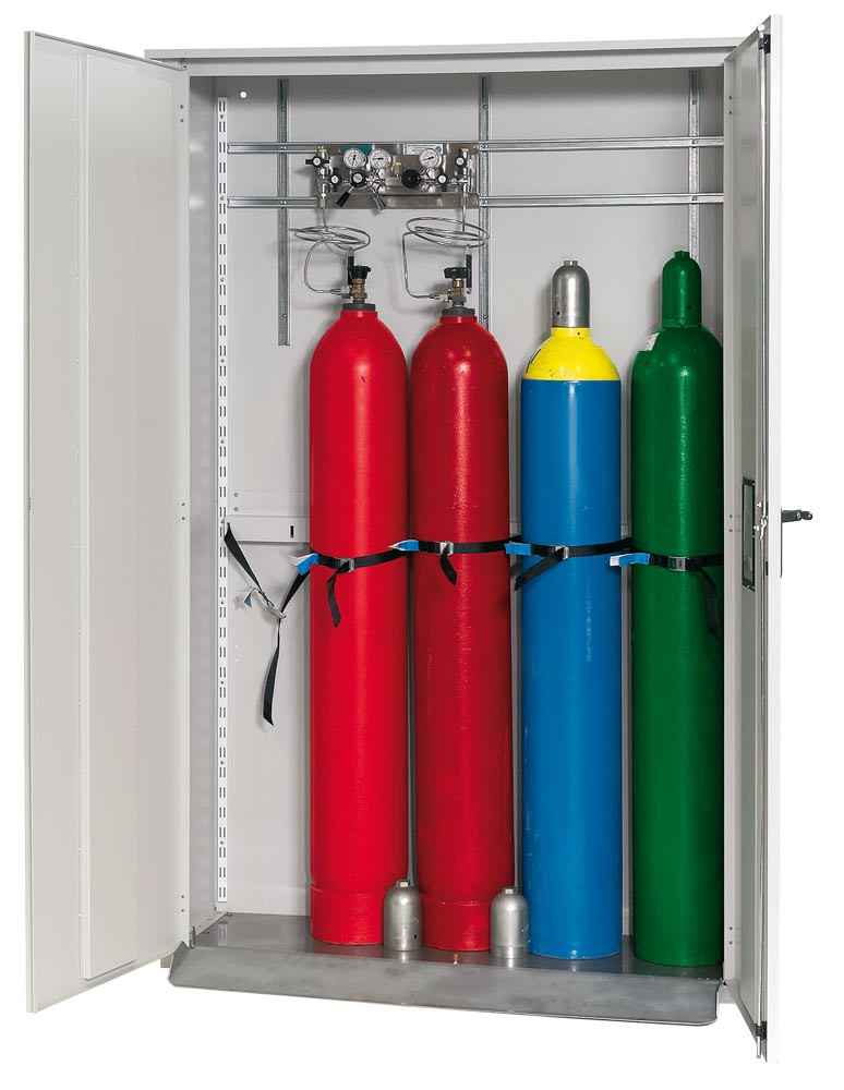 Druckgasflaschenschrank, zur Außenaufstellung, 2 Flaschenplätze, BxTxH 700x400x2150 mm, verzinkt + RAL 7035 EP510609