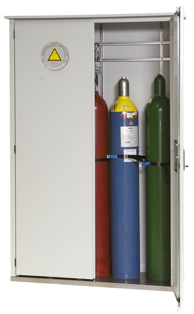 Druckgasflaschenschrank, zur Außenaufstellung, 3 Flaschenplätze, BxTxH 1000x400x2150 mm, verzinkt + RAL 7035 EP510611