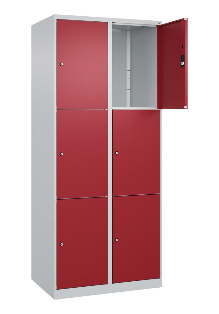 Fächerschrank, BxTxH 800x500x1850 mm, 2x3 Fächer, Abt.B 400 mm, bodenstehend, Schloss, glatte Türen, Farbwahl
