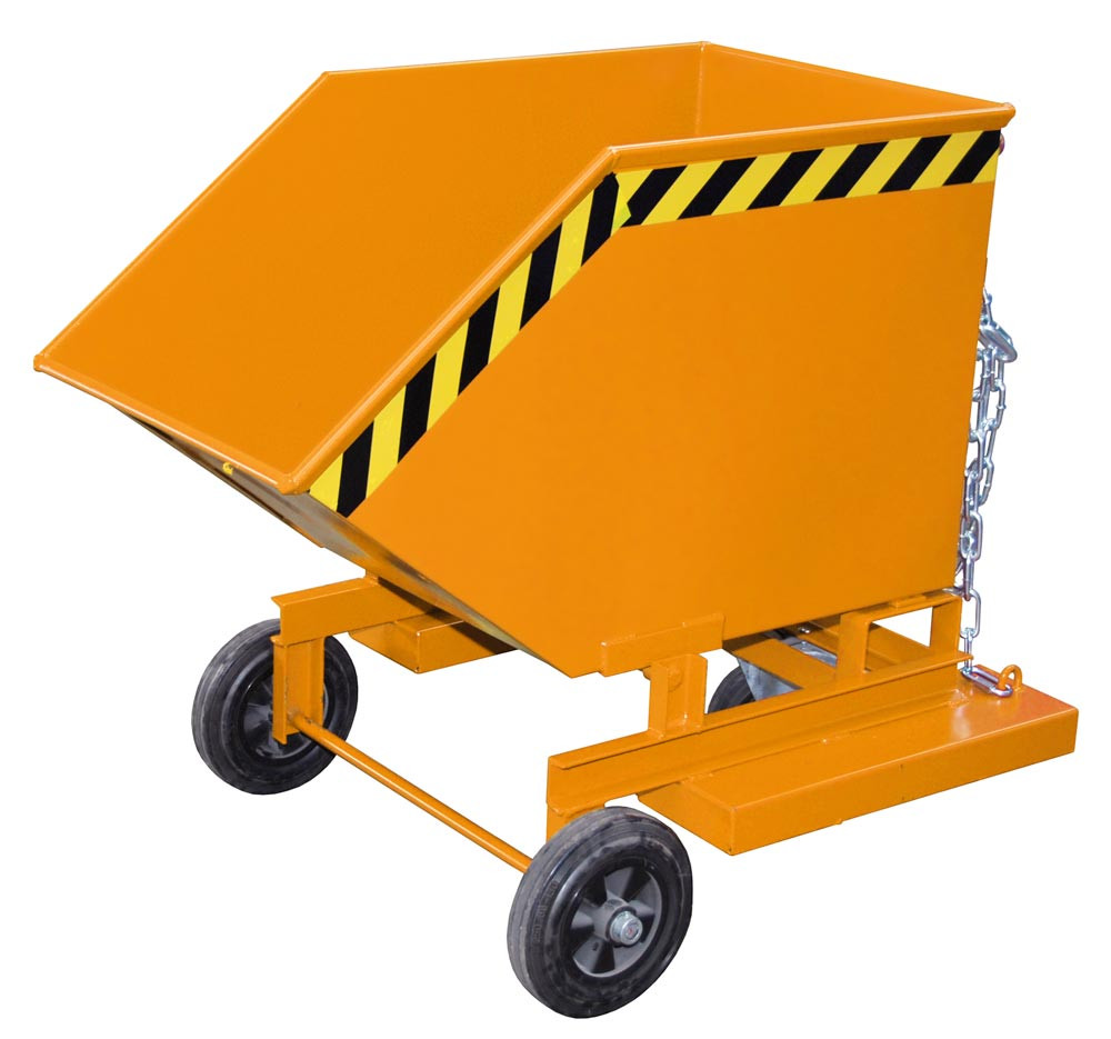 Fahrbarer Kippbehälter mit Einfahrtaschen, Volumen 0,25 cbm, LxBxH 1115x820x990 mm, lackiert RAL 2000 gelborange EP533601