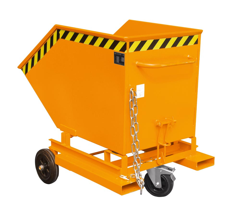 Fahrbarer Kippbehälter mit Einfahrtaschen, Volumen 0,4 cbm, LxBxH 1320x900x1090 mm, lackiert RAL 2000 gelborange