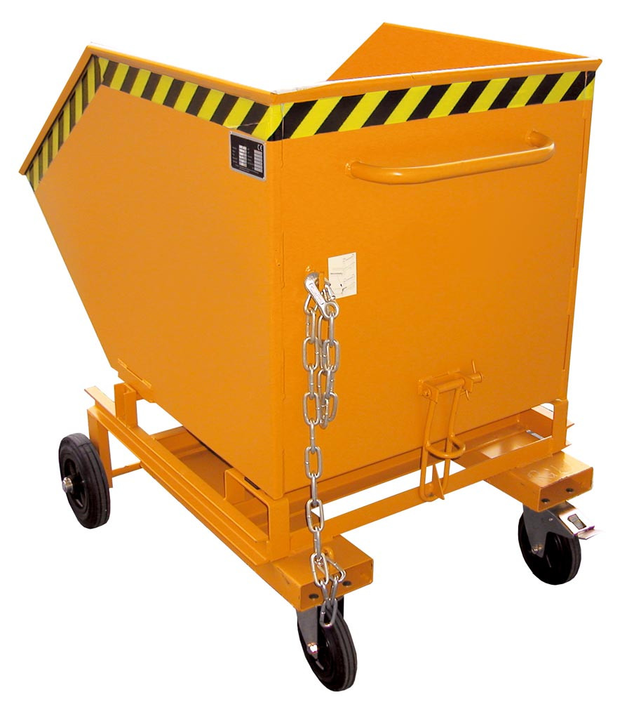 Fahrbarer Kippbehälter mit Einfahrtaschen, Volumen 0,25 cbm, LxBxH 1115x820x990 mm, lackiert RAL 2000 gelborange EP533601