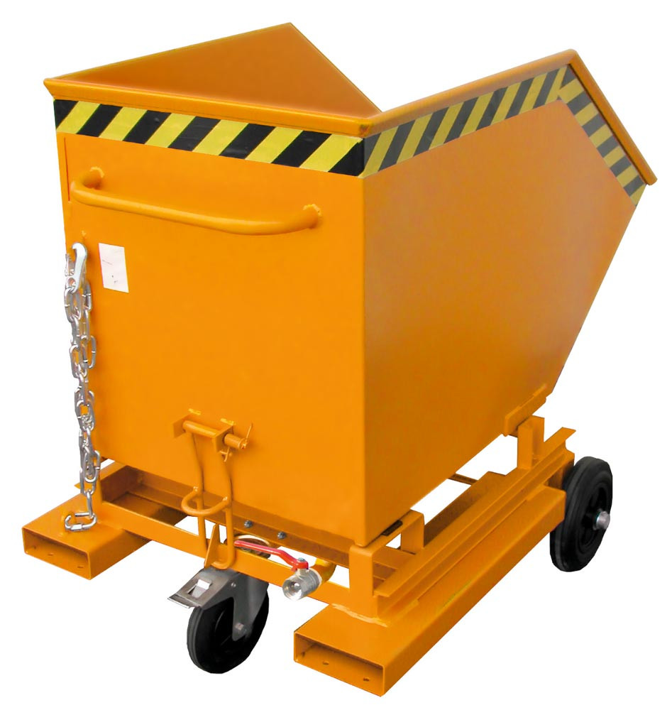 Fahrbarer Späne-Kippbehälter mit Einfahrtaschen, Volumen 0,4 cbm, LxBxH 1320x900x1090 mm, lackiert RAL 2000 gelborange EP533611