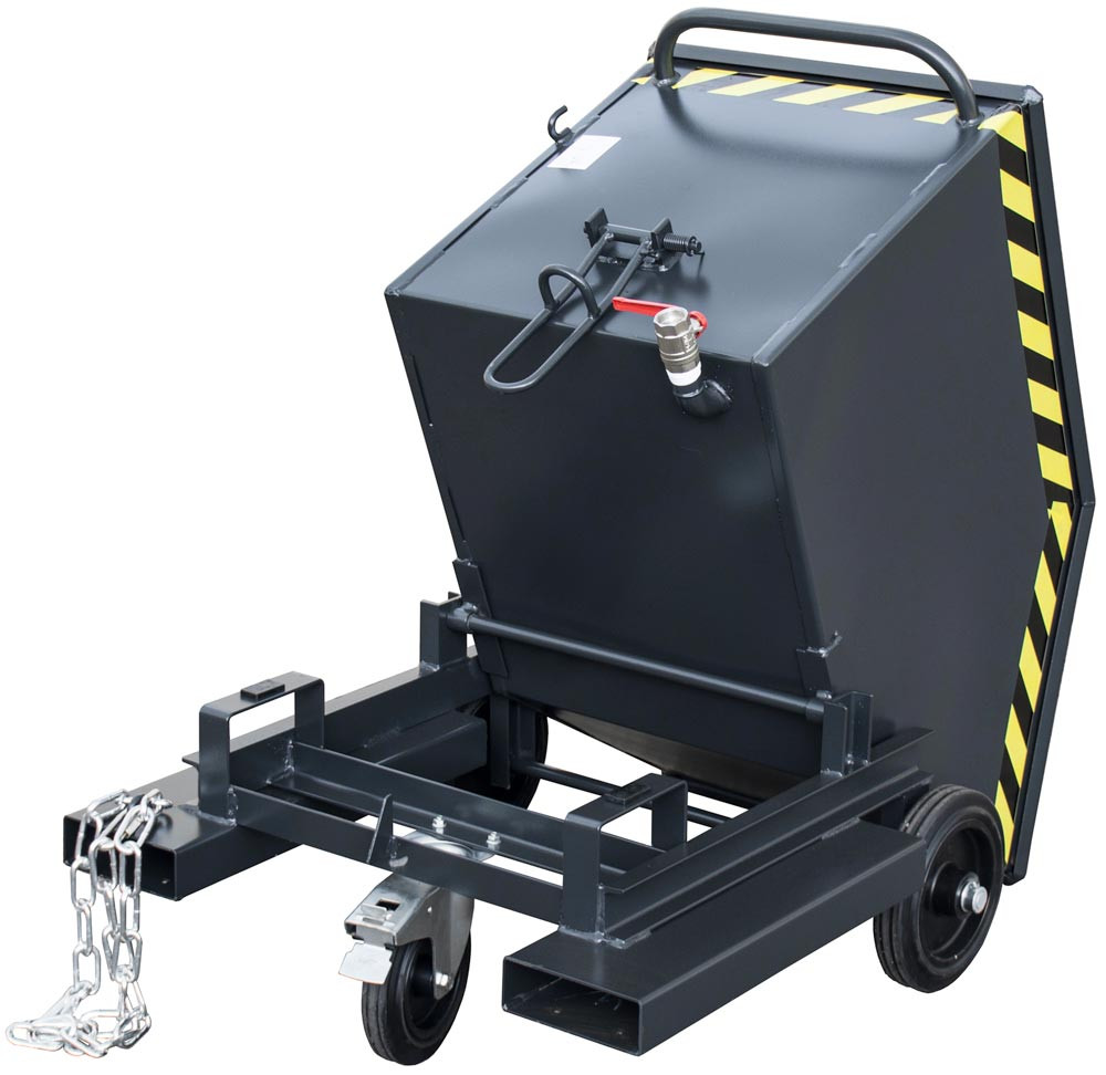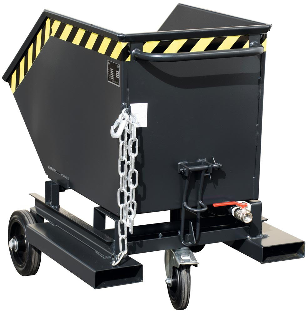 Fahrbarer Späne-Kippbehälter mit Einfahrtaschen, Volumen 0,25 cbm, LxBxH 1115x820x990 mm, lackiert RAL 7021 schwarzgrau