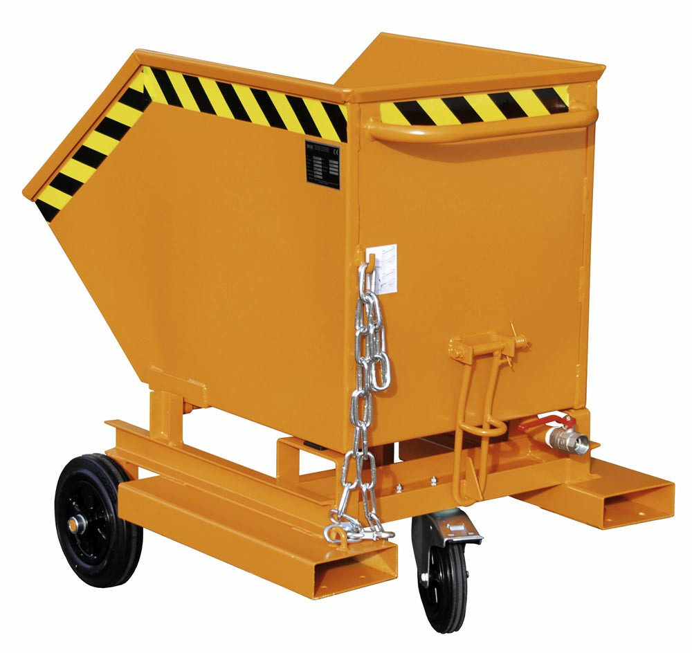 Fahrbarer Späne-Kippbehälter mit Einfahrtaschen, Volumen 0,4 cbm, LxBxH 1320x900x1090 mm, lackiert RAL 2000 gelborange EP533611