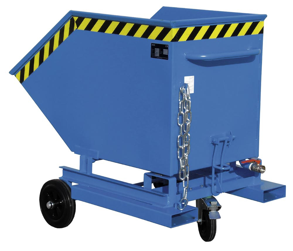 Fahrbarer Späne-Kippbehälter mit Einfahrtaschen, Volumen 0,4 cbm, LxBxH 1320x900x1090 mm, lackiert RAL 5012 lichtblau