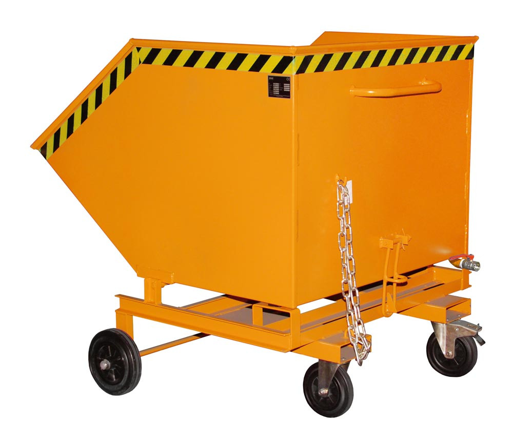 Fahrbarer Späne-Kippbehälter mit Einfahrtaschen, Volumen 1,0 cbm, LxBxH 1420x1340x1290 mm, lackiert RAL 2000 gelborange