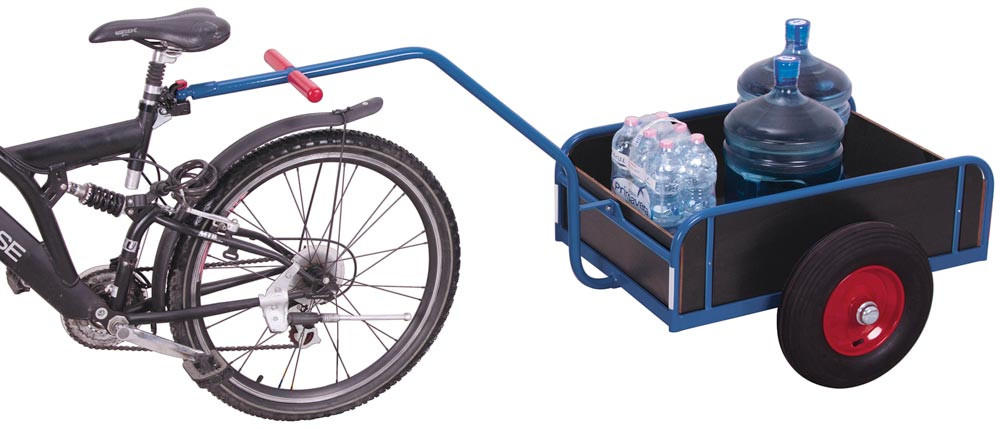 Fahrradanhänger mit Bordwänden, Ladefläche LxB 765x435 mm, Bordwand-H 220 mm, Traglast 200 kg, Anhängerkupplung, Luftbereifung, RAL 5010 enzianblau