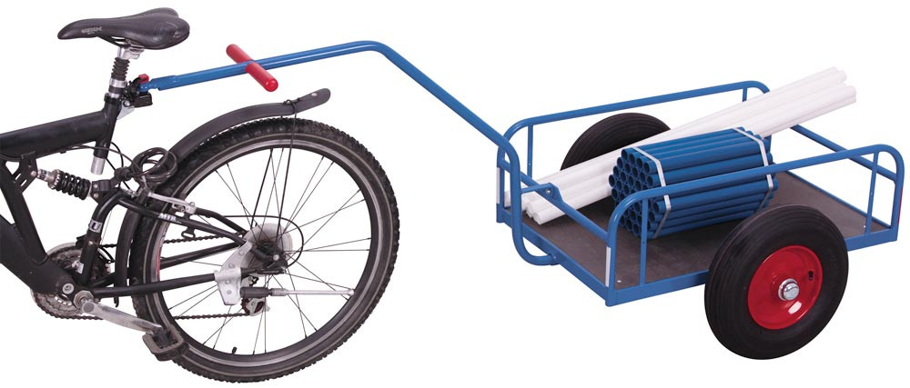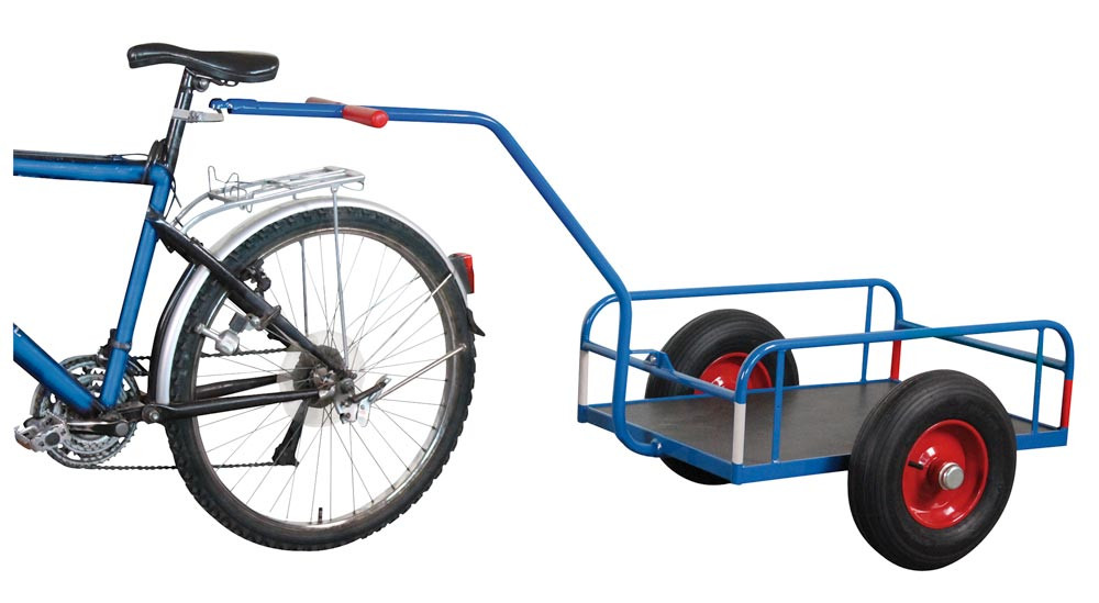 · Geschweißter Profilstahlrahmen · Pulverbeschichtet RAL 5010 enzianblau · Schlag- und kratzfest · Ladefläche mit rutschsicherer Siebdruckplatte aus wasserfest verleimtem Sperrholz · Sicherheitsreflektoren · Geländer- bzw. Bordwandhöhe 220 mm · Inkl. kompletter Anhängerkupplung · Deichsel mit angeschweißter Halbkugelschale · Kugelbolzen mit Halteklemme wird zur Selbstmontage am Fahrradrahmen lose mitgeliefert · Luftbereifung · Stahlfelge mit Kugellager
