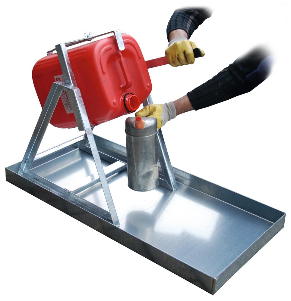 ∙ Leichtes und kraftsparendes Abfüllen von Kanistern ∙ Konstruktion aus verzinktem Stahlblech ∙ Vorgerichtet für Wandbefestigung