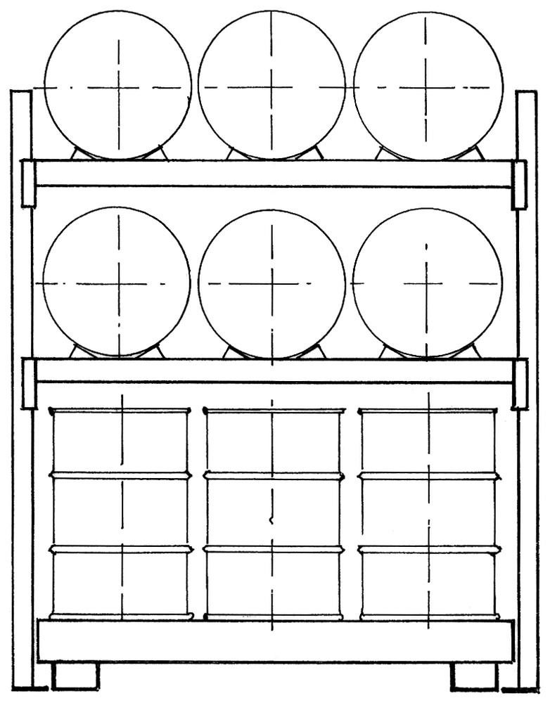 6 x 200-l-Fass liegend, 6 x 200-l-Fass stehend
