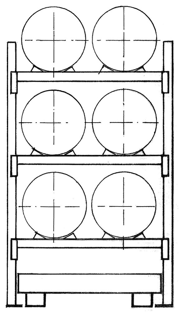 ∙ Standard-Fassauflagen gehören, entsprechend der Tabelle, für liegende Fässer zum Lieferumfang