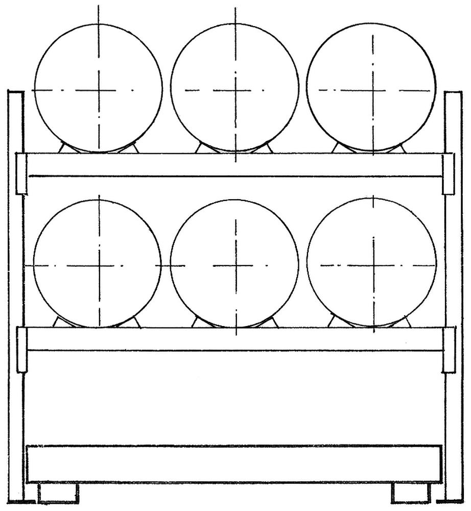 ∙ Standard-Fassauflagen gehören, entsprechend der Tabelle, für liegende Fässer zum Lieferumfang