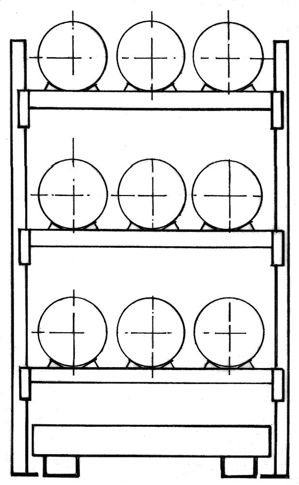 ∙ Standard-Fassauflagen gehören, entsprechend der Tabelle, für liegende Fässer zum Lieferumfang