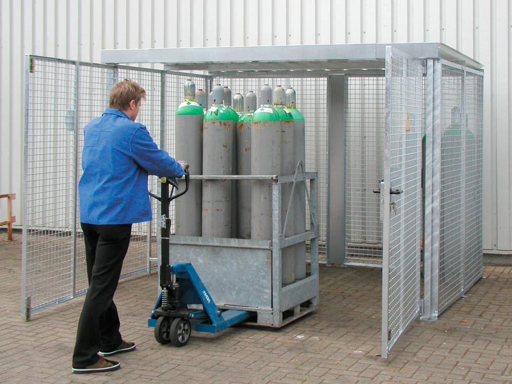 ∙ Zur vorschriftsmäßigen Lagerung von Gasflaschen im Außenbereich ∙ Ausführung nach TRGS 510 ∙ Stabile Rahmenkonstruktion mit Gitterfüllung, komplett feuerverzinkt nach EN ISO 1461 ∙ Abschließbar ∙ Vorbereitet zur Bodenbefestigung ∙ Baukastensystem mit Aufbauanleitung zur einfachen Selbstmontage