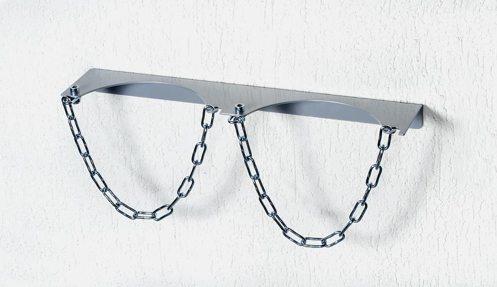 Gasflaschen-Wandhalterung, verzinkt, für 2 Flaschen Durchm. 230 mm, Kettensicherung + Bohrungen zur Wandbefestigung