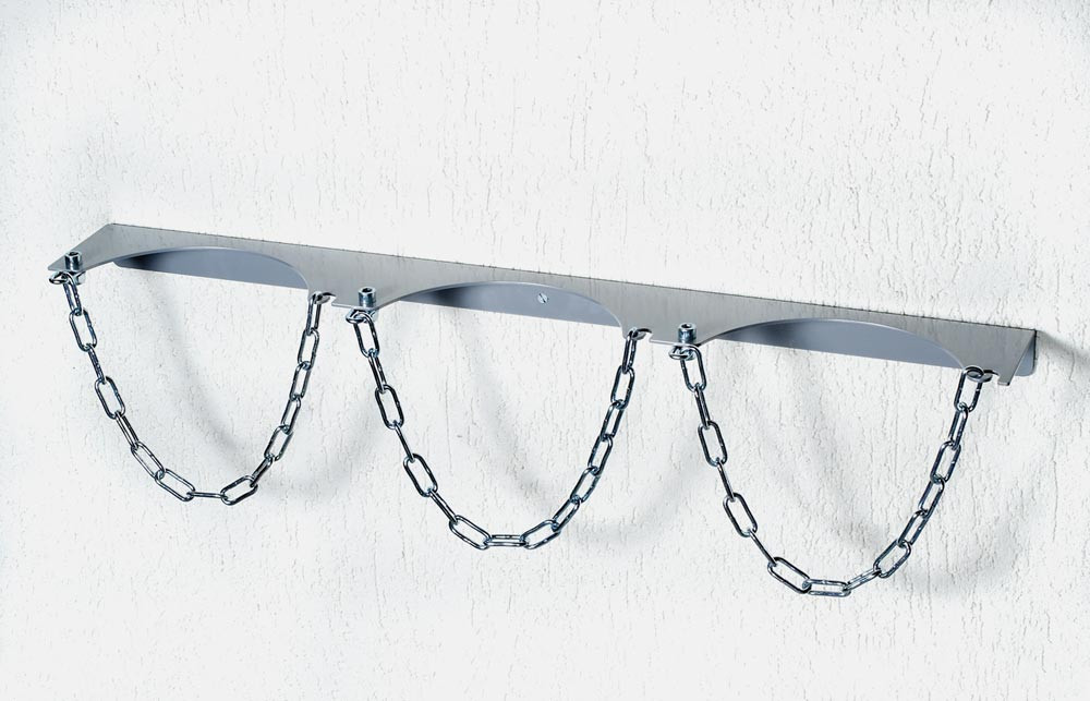 Gasflaschen-Wandhalterung, verzinkt, für 3 Flaschen Durchm. 230 mm, Kettensicherung + Bohrungen zur Wandbefestigung