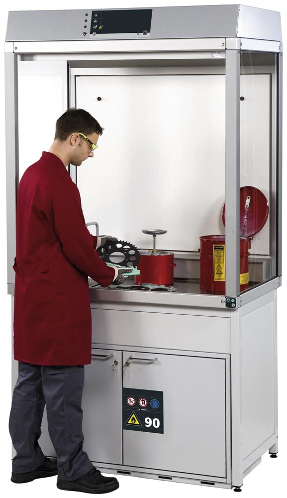 Inklusive Zu- und Abluftüberwachung mit Kontrollanzeige, Frischluftschleier, Innenbeleuchtung, transparenten Seitenwänden und melaminharzbeschichteter Rückwand.