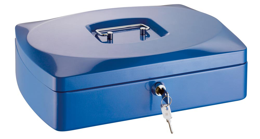Geldkassette, BxTxH 155x120x80 mm, Stahlblech, Kunststoffeinsatz, Zylinderschloss, blau EP526947