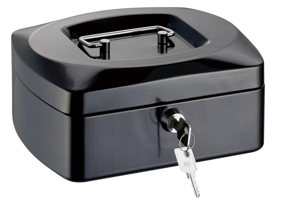 Geldkassette, BxTxH 155x120x80 mm, Stahlblech, Kunststoffeinsatz, Zylinderschloss, schwarz EP526945