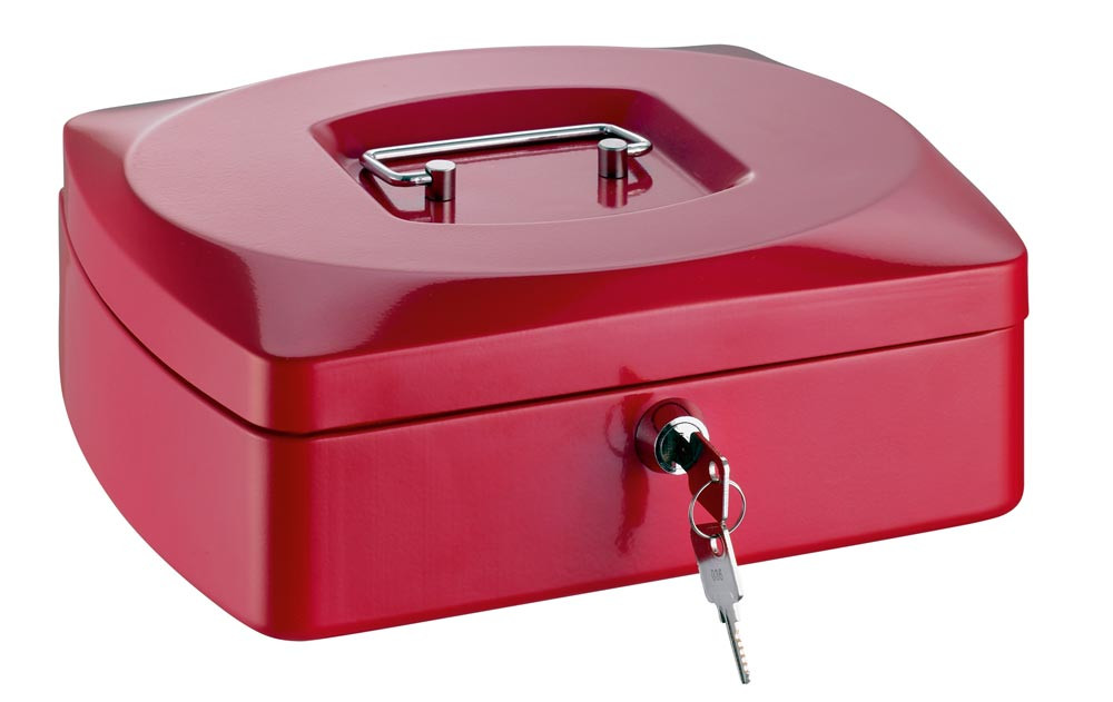 Geldkassette, BxTxH 155x120x80 mm, Stahlblech, Kunststoffeinsatz, Zylinderschloss, rot EP526946