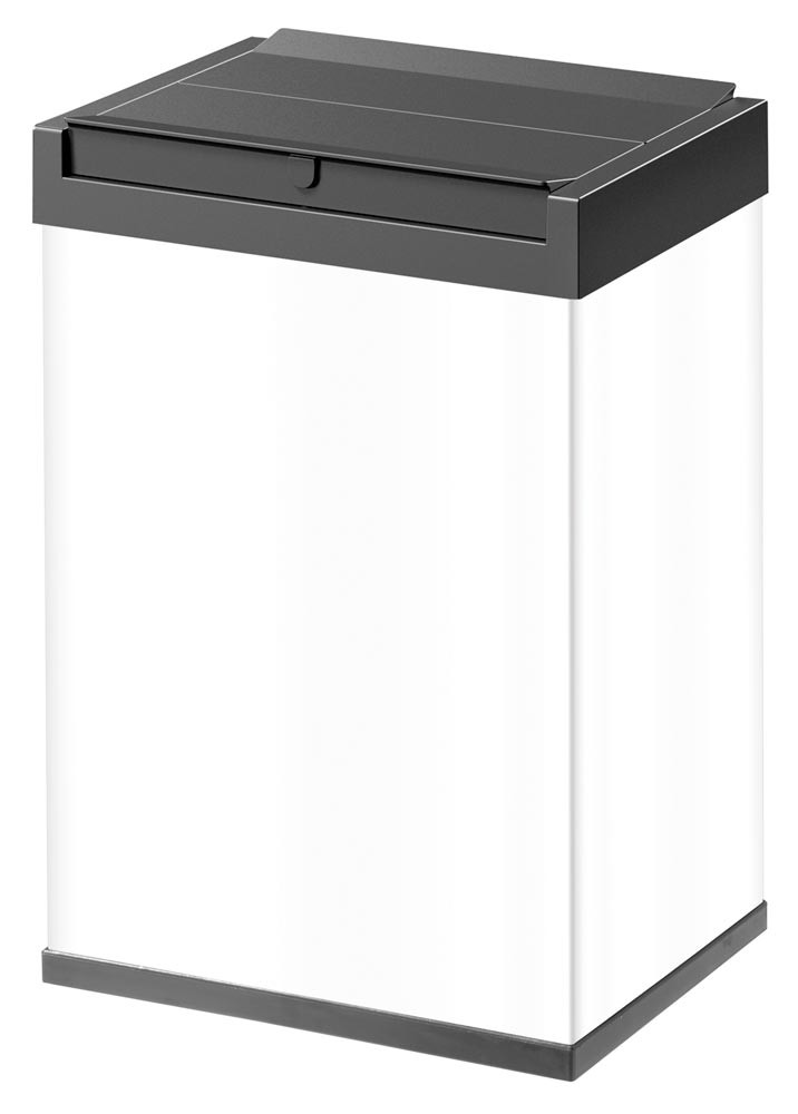 Großraum-Abfallbox, Volumen 35 l, BxTxH 340x260x500 mm, Gehäuse Stahlblech weiß, Kunststoff-Schwingdeckel schwarz EP552603