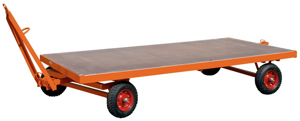 · Extrem robuste, pulsgeschweißte Profilstahlkonstruktion · Lackierung in RAL 2004 reinorange · Alle 4 Ecken mit Rohrhülsen zum Einstecken von Rungen, Bordwänden etc. · Ladefläche aus rutsch- und wetterfester Siebdruckplatte unterlegt mit wetterfester OSB-Platte · Deichsel-Schnellwechselsystem mit Fallsicherung und Zugöse Ø 35 mm · Anhängerkupplung mit Bolzen Ø 30 mm · Schwerlasträder mit Kugellagerung · Risikobeurteilung gem. DIN EN ISO 14121-1 · Max. Fahrgeschwindigkeit 6 km/h