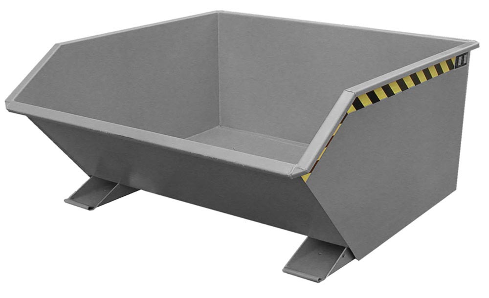 Mulden-Selbstkippbehälter, automatischer Aufrichter, Traglast 1000 kg, LxBxH 1440x1280x680 mm, Vol. 0,75 cbm, RAL 7005 mausgrau
