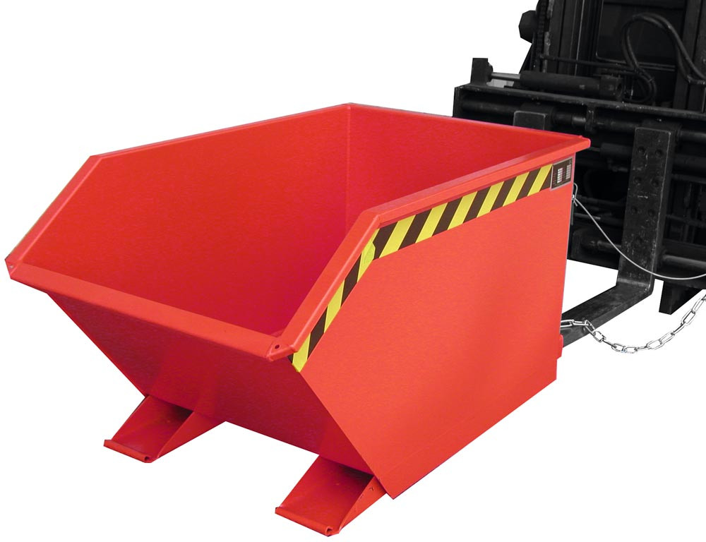 Mulden-Selbstkippbehälter, automatischer Aufrichter, Traglast 1000 kg, LxBxH 1440x780x680 mm, Vol. 0,50 cbm, RAL 3000 feuerrot