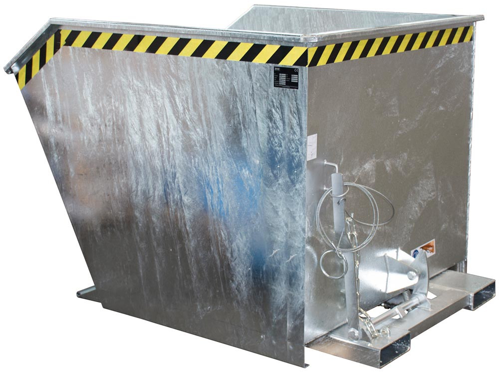 Mulden-Selbstkippbehälter, automatischer Aufrichter, Traglast 1500 kg, LxBxH 1640x1280x1090 mm, Vol. 1,50 cbm, verzinkt