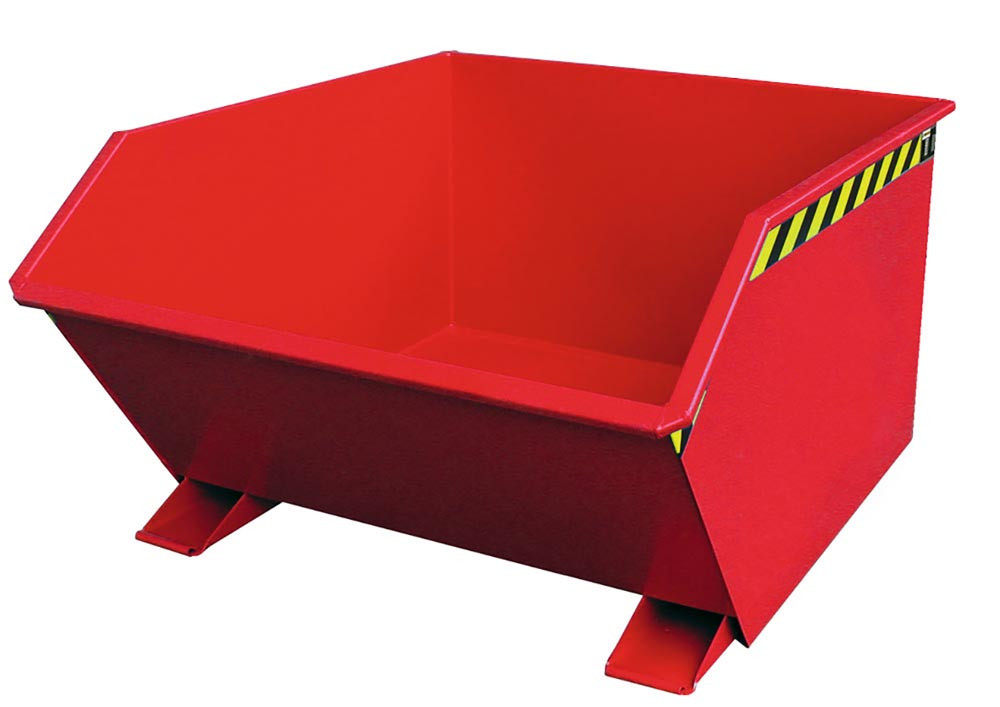 Mulden-Selbstkippbehälter, automatischer Aufrichter, Traglast 1500 kg, LxBxH 1640x1280x780 mm, Vol. 1,00 cbm, RAL 3000 feuerrot