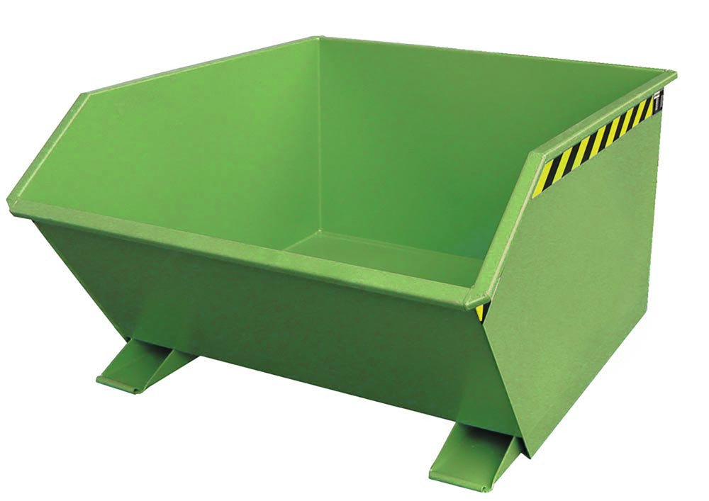 Mulden-Selbstkippbehälter, automatischer Aufrichter, Traglast 1500 kg, LxBxH 1640x1280x780 mm, Vol. 1,00 cbm, RAL 6011 resedagrün