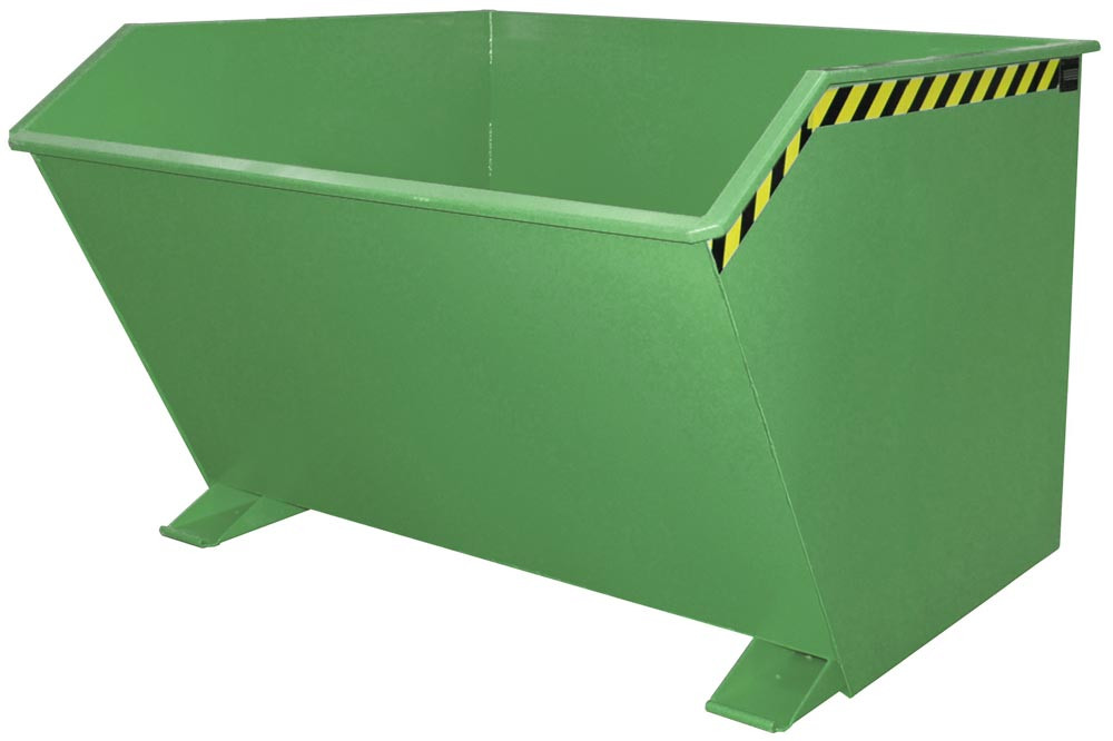 Mulden-Selbstkippbehälter, automatischer Aufrichter, Traglast 750 kg, LxBxH 1440x680x580 mm, Vol. 0,30 cbm, RAL 6011 resedagrün EP555345