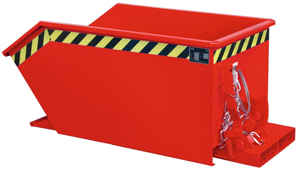 Mulden-Selbstkippbehälter, automatischer Aufrichter, Traglast 750 kg, LxBxH 1440x680x580 mm, Vol. 0,30 cbm, RAL 3000 feuerrot EP555343