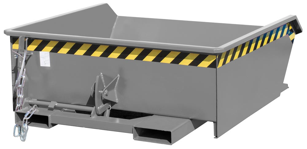 · Extrem niedrige Schüttkantenhöhe von 350 mm ∙ Mit kippbarer Mulde, 3 mm Wannenblech mit umlaufendem Randprofil ∙ Günstiger Kippwinkel, Kippen in jeder Höhe per Seilzug ∙ Sicherung gegen unbeabsichtigtes Abrutschen und Auskippen ∙ Robuste Stahlblechkonstruktion ∙ Stabiler Grundrahmen mit Einfahrtaschen · Ideal für den Einsatz unter Maschinen