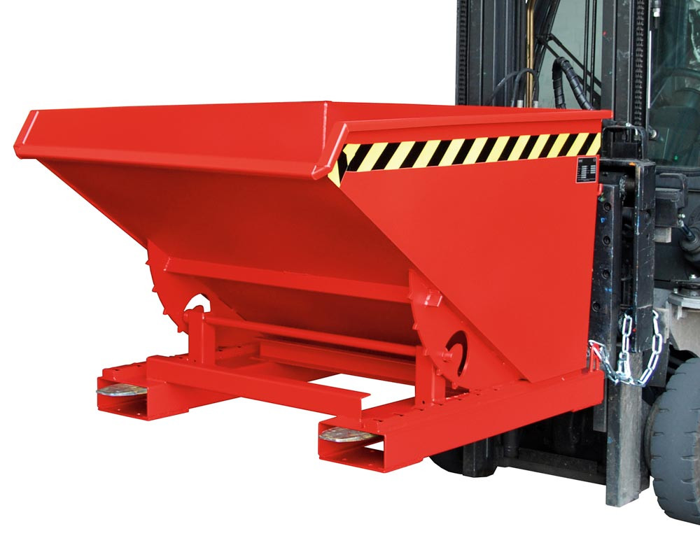 Mulden-Selbstkipper mit Abrollsystem, umlaufender Rand, LxBxH 1260x1070x835 mm, Vol. 0,6 cbm, Traglast 1000 kg, lackiert RAL 3000 feuerrot