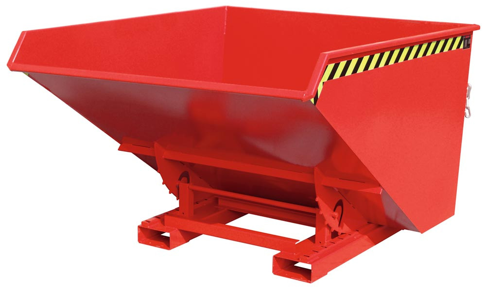 Mulden-Selbstkipper mit Abrollsystem, umlaufender Rand, LxBxH 1720x1570x1095 mm, Vol. 1,7 cbm, Traglast 1500 kg, lackiert RAL 3000 feuerrot