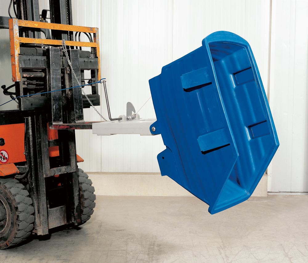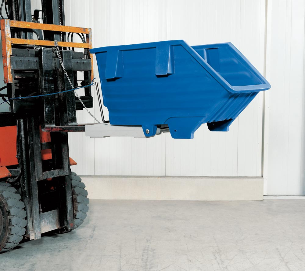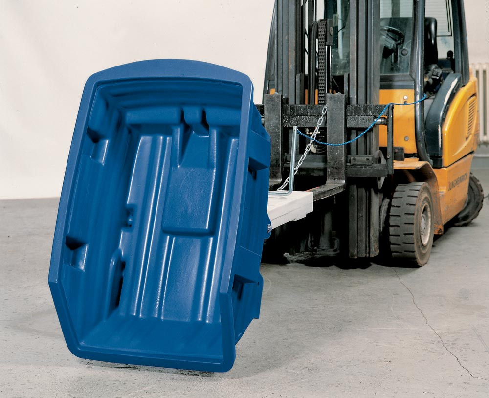 Muldenkippbehälter aus PE, Vol. 0,75 cbm, LxBxH 1650x1150x890 mm, Traglast 250 kg, mit Staplertaschen, Farbe blau EP524263