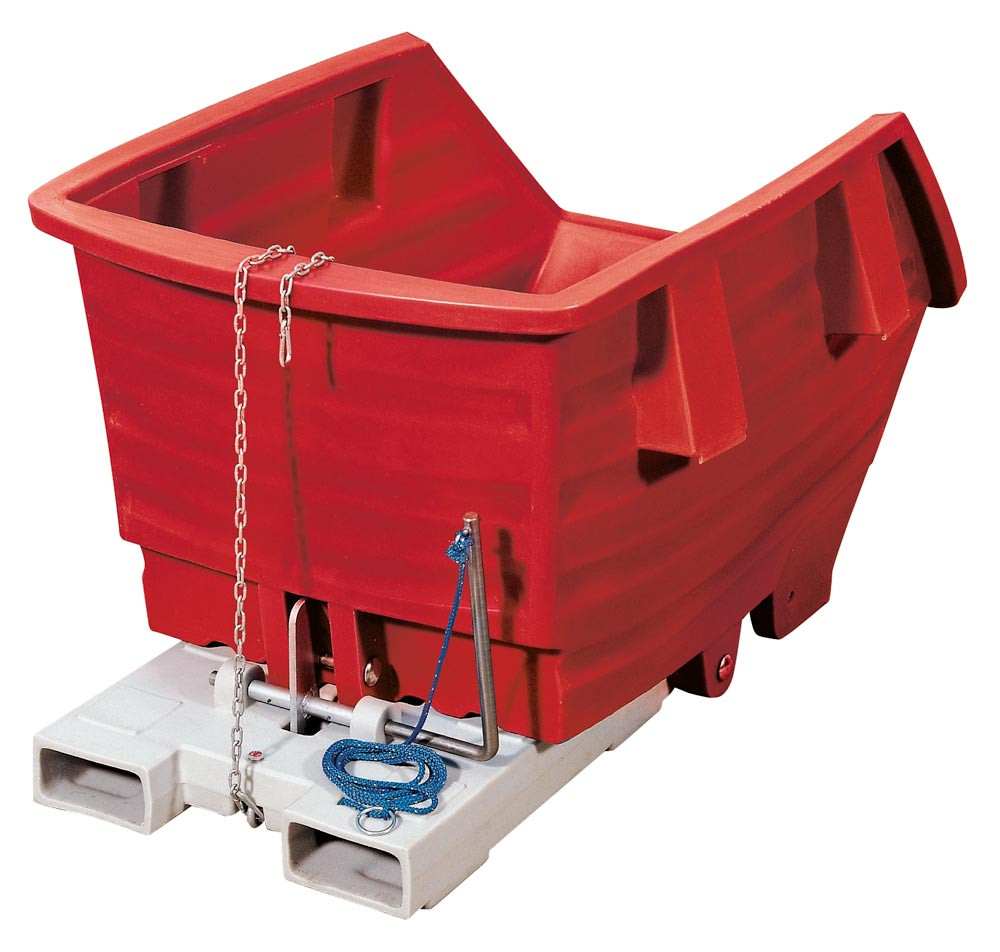 Muldenkippbehälter aus PE, Vol. 0,5 cbm, LxBxH 1530x960x790 mm, Traglast 150 kg, mit Staplertaschen, Farbe rot