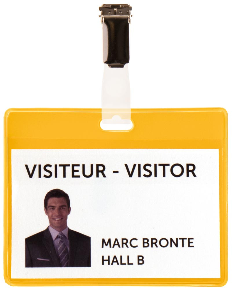 Namensschild, PVC, LxB 82,5x103 mm, quer, gelb, mit Befestigungsclip, VE 75 Stück