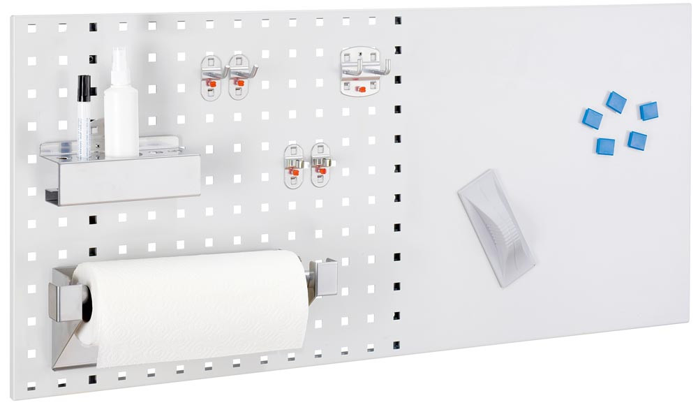 Organisationswand, BxH 1000x450 mm, RAL 7035, Beschriftungsfläche rechts, Lochplattenfläche links, inkl. Zubehör, Set 3