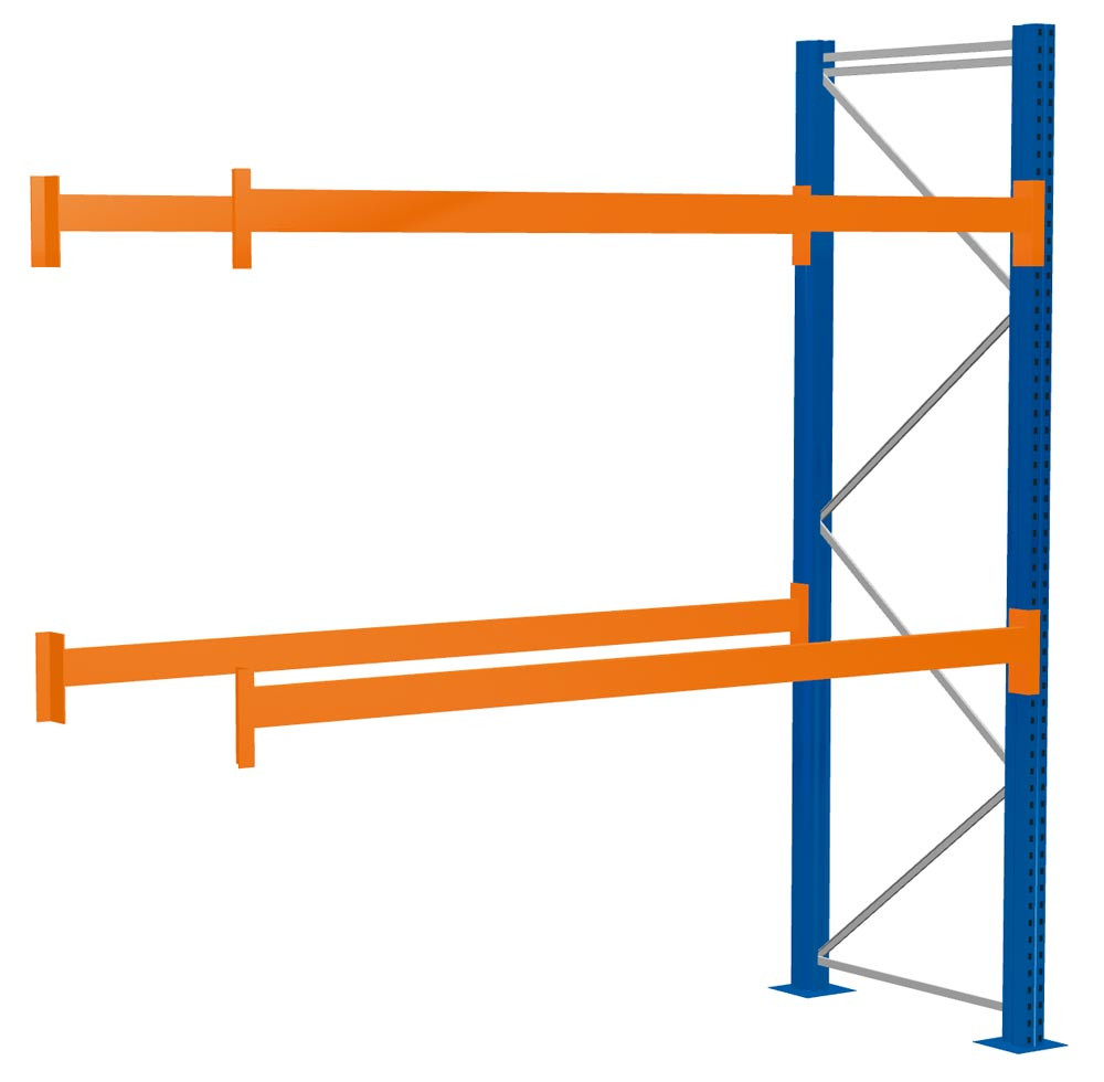 Palettenregal, Anbaufeld, BxTxH 2786x2200x5000 mm, 3 Lagerebenen, Fachlast 1500 kg, Feldlast 4582 kg, Rahmen blau, Holme reinorange EP539883