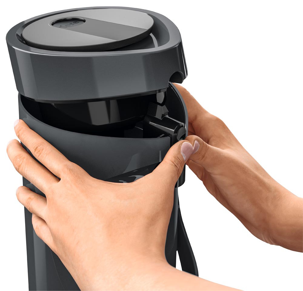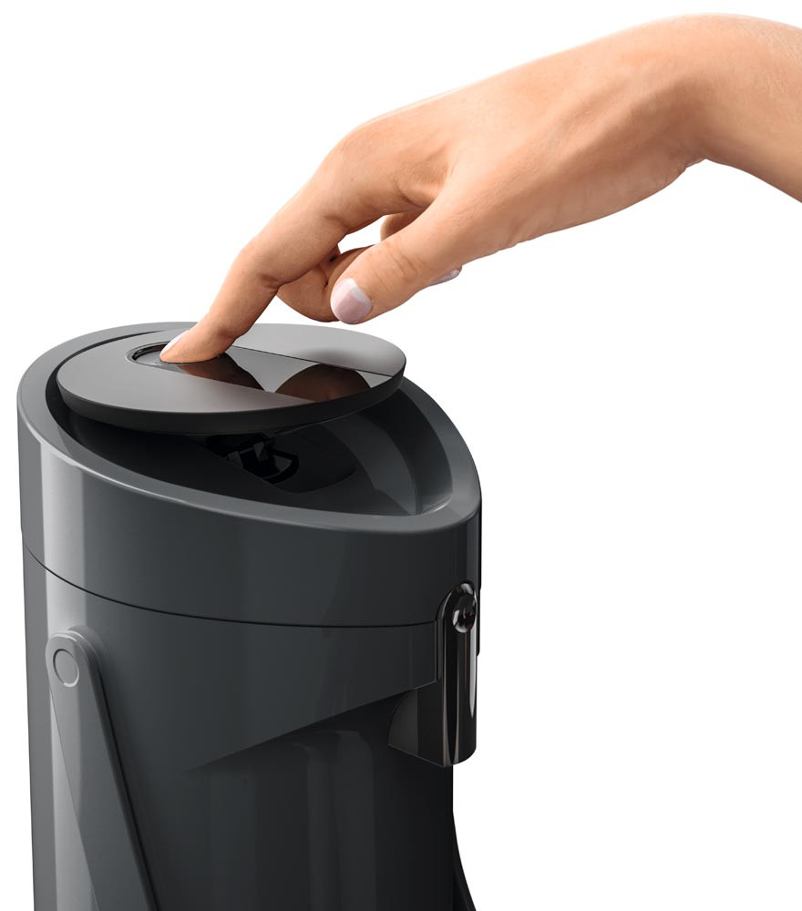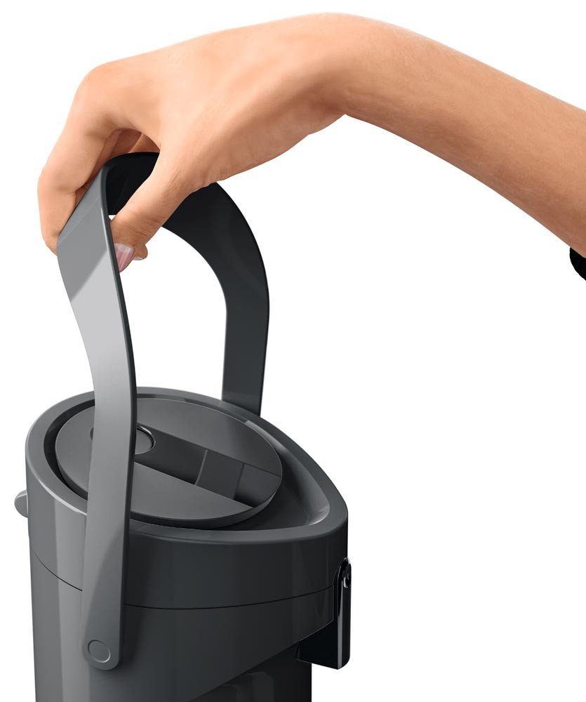 · Kunststoff-Gehäuse · Doppelwandiger Glas-Isolierkolben für 12 h heiße oder 24 h kalte Getränke · Hohe Pump-Leistung dank Komfort-Press-Pumpmechanismus mit breitem Druckknopf · Pump-Kopf komplett abnehmbar · Abnehmbare Tropfschale · Integrierter Tragegriff · Drehbarer Fuß zum problemlosen Schwenken · Leichtes Befüllen und einfache Reinigung per Hand