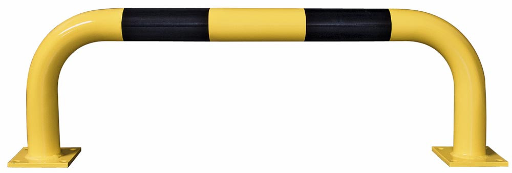 Rammschutz-Bügel XL, Rundrohr 108/3,6 mm, gebogen, BxH 1500x600 mm, Innenbereich, gelb beschichtet, mit schwarzen Streifen, zum Aufdübeln