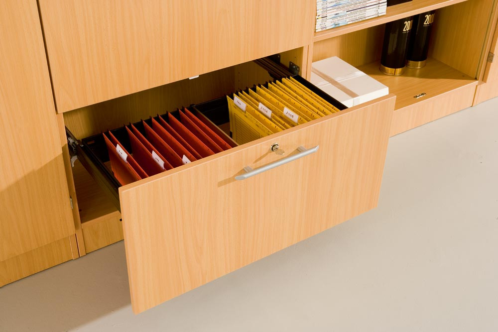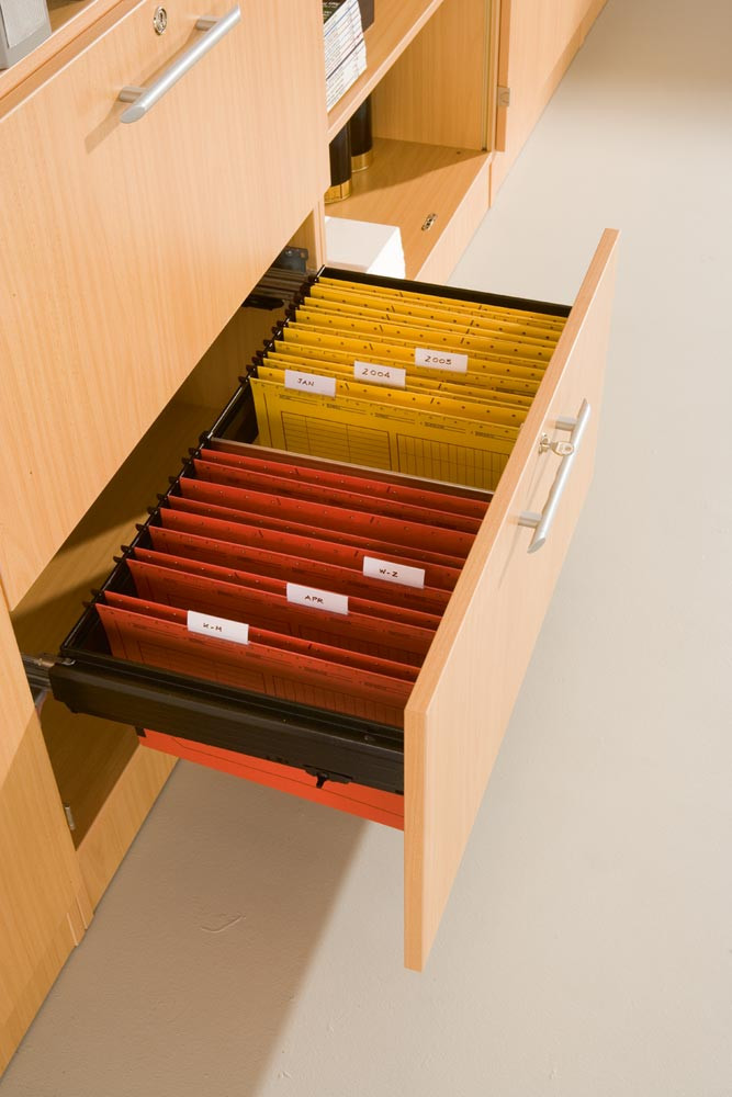 · Robuste Hängeregistratur aus Metall auf Differential-Teleskopführungen, Traglast 60 kg, 30 mm Überzug, ohne Boden, einzeln verschließbar