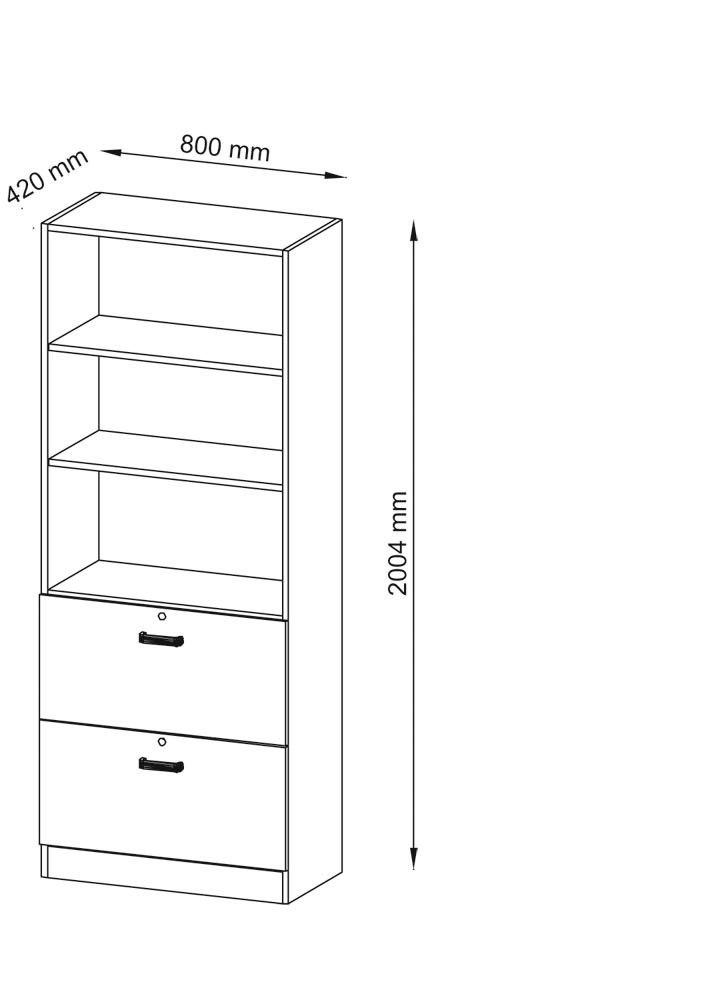 Regalschrank, BxTxH 406x420x2004 mm, 5 OH, 2 Böden, 4 Schubladen, weiß/eiche EP539441
