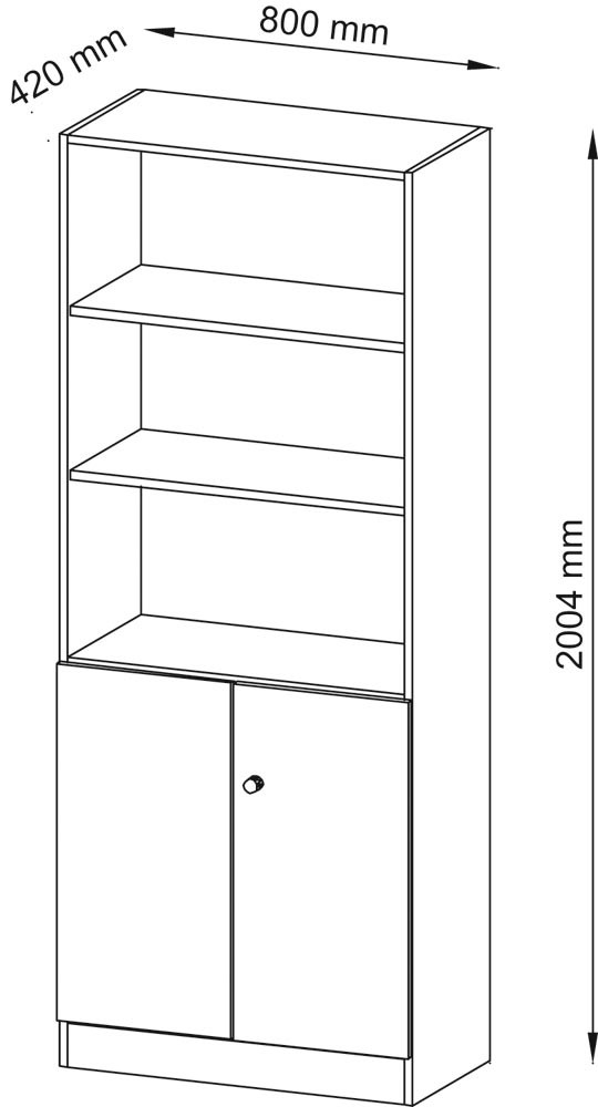 Regalschrank, BxTxH 800x420x2004 mm, 5 OH, 4 Böden, 2 OH Holztüren, Schloss, weiß