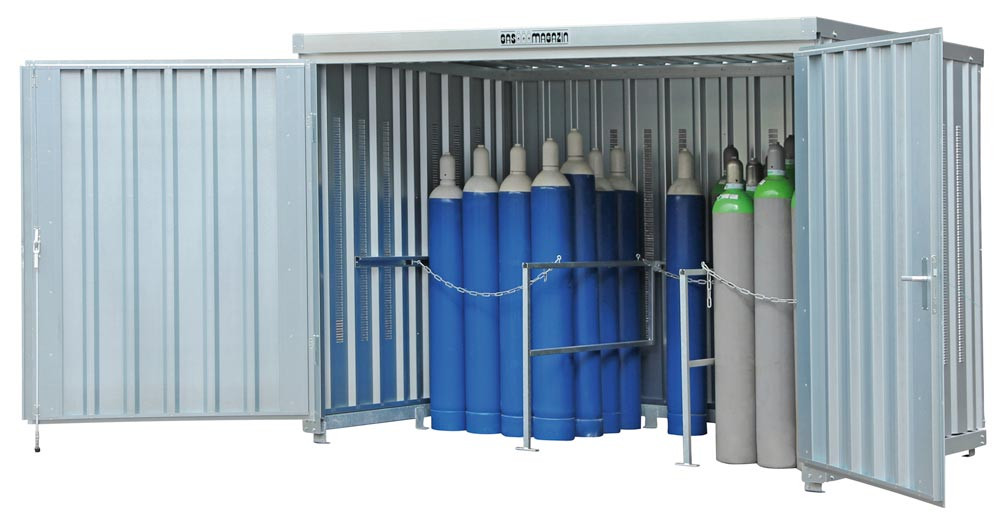 Safe-Gasmagazin, Verzinkt, ohne Boden, BxTxH 3020x2175x2175 mm, montiert, Kapazität 66 Flaschen 50 l