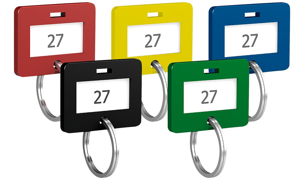 Schlüsselanhänger, farbig sortiert, 10 Stück, Farben: rot, blau, schwarz, gelb, grün